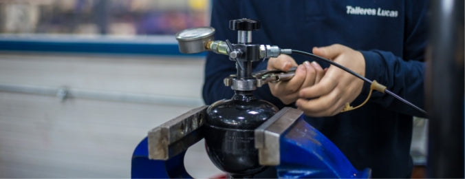 Se refiere al suministro de Nitrógeno a cada acumulador nuevo y/o usado, post reparación e independiente de su modelo y tipo, en el lado diseñado para tal efecto. Esto, con el fin de que la presión contenida pueda ser aprovechada como fuente de energía, para compensar, almacenar y/o amortiguar variables de la operación, la cual dependerá directamente de la aplicación y/o función.